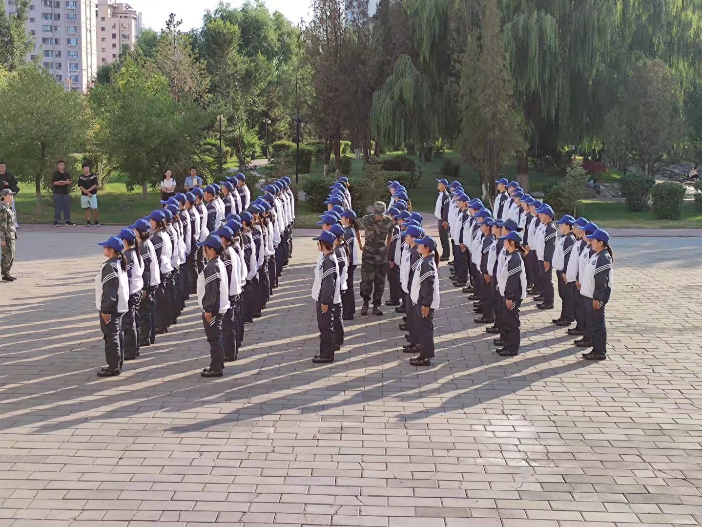 军事训练作为大学生涯的第一堂必修课,旨在提高广大学生的身体素质、磨炼意志品德、培育家国情怀,进一步增强团队意识和组织纪律性,使学生养成良好的学风和生活作风。挥别过去,开始新的征程,希望广大新生通过军训磨练,成长为一名合格的当代大学生。